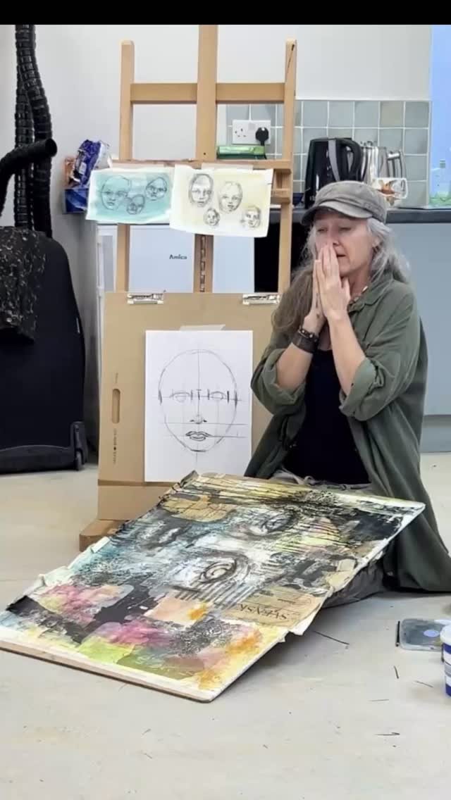 Each week includes a guided project, and we’ll paint one large expressive portrait together in a series of live sessions. You’ll learn to embrace imperfection, work intuitively, and let soulful faces emerge through collage, paint, marks, and emotion.