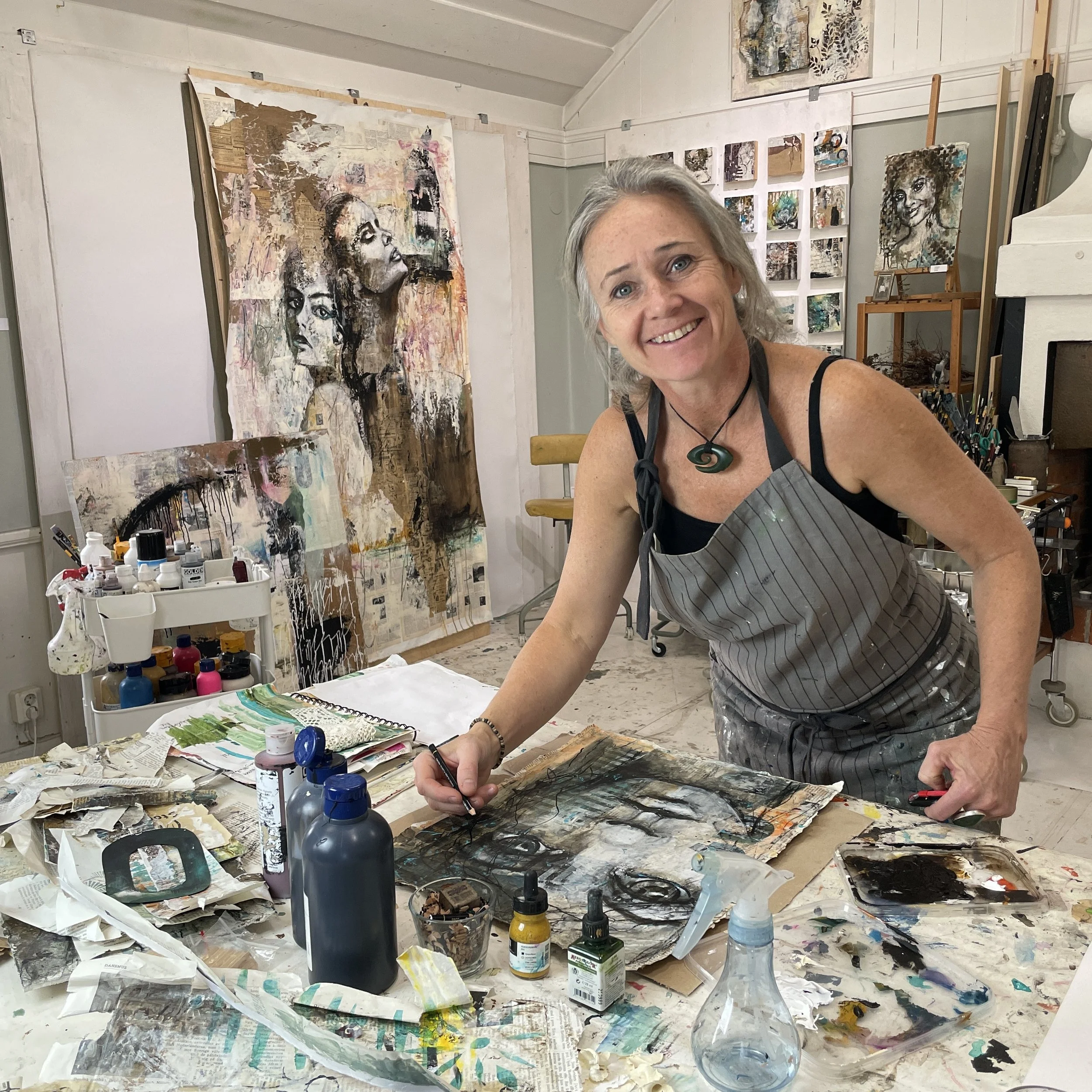 Now, I am a Mixed Media Artist living in Stockholm, Sweden who has sold artwork, exhibited and run workshops all over the world. And I’m on a mission to inspire people like you to be brave, to use your inner creativity and to do more of what you love. To learn how to be more creative in life, as well as in your art.